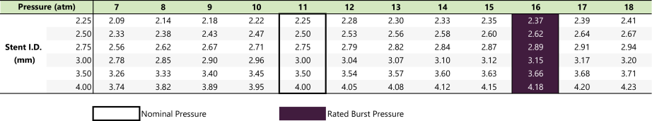 - Capacidad de sobreexpansión optimizada de hasta 6.25 mm (para stents de Ø3.50mm a Ø4.50mm)